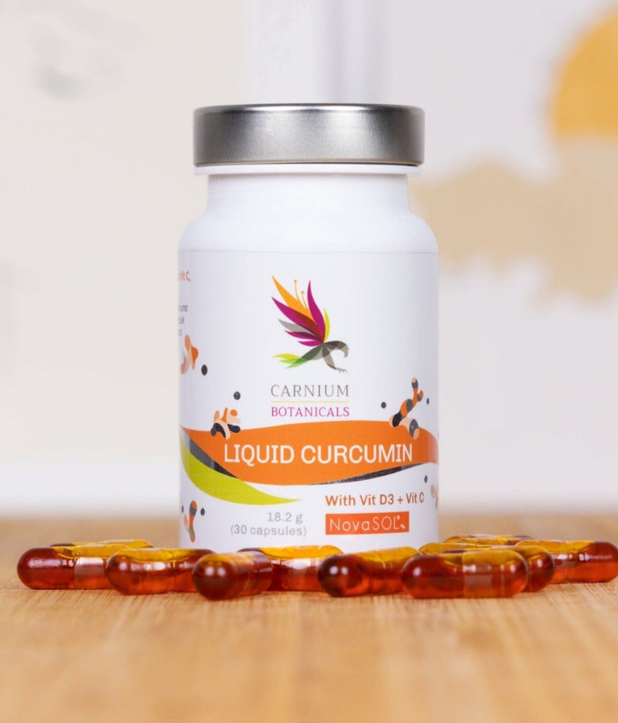 La curcumina líquida en cápsulas se transforma en una forma especial completamente soluble en agua y con pH estable, lo que permite una absorción óptima. En comparación con la curcumina ordinaria, la curcumina líquida NovaSOL® tiene una biodisponibilidad 185 veces superior y permanece más tiempo en el cuerpo (después de 24 horas aún está en el flujo sanguíneo y es eficaz).