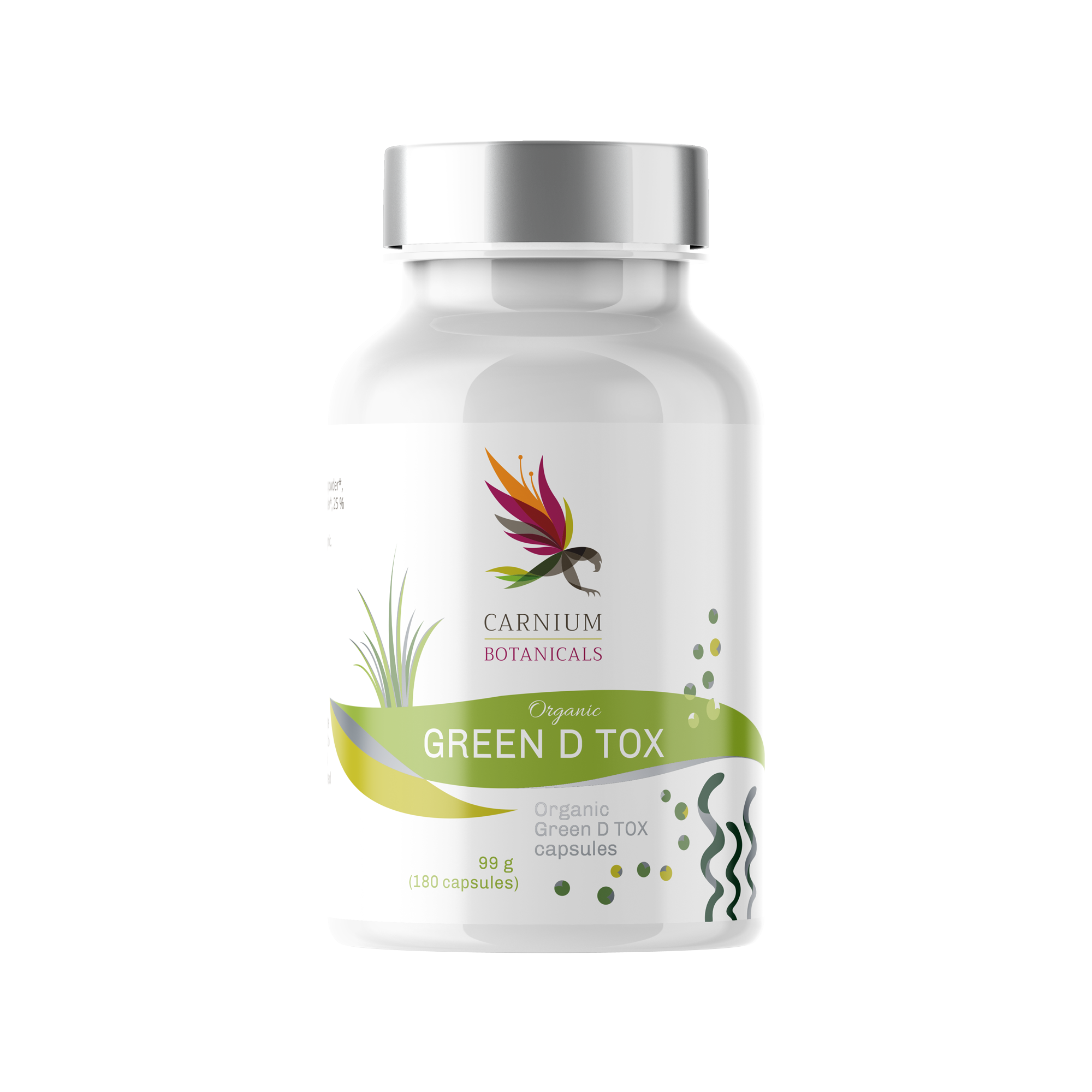 Organic Green D TOX combina superalimentos naturales reconocidos por sus propiedades desintoxicantes y su riqueza en nutrientes. La espirulina y la clorella actúan como poderosas fuentes de clorofila para limpiar y eliminar toxinas. El pasto de trigo y la cebada ayudan a renovar la energía, aportando vitaminas y minerales esenciales para favorecer la vitalidad.