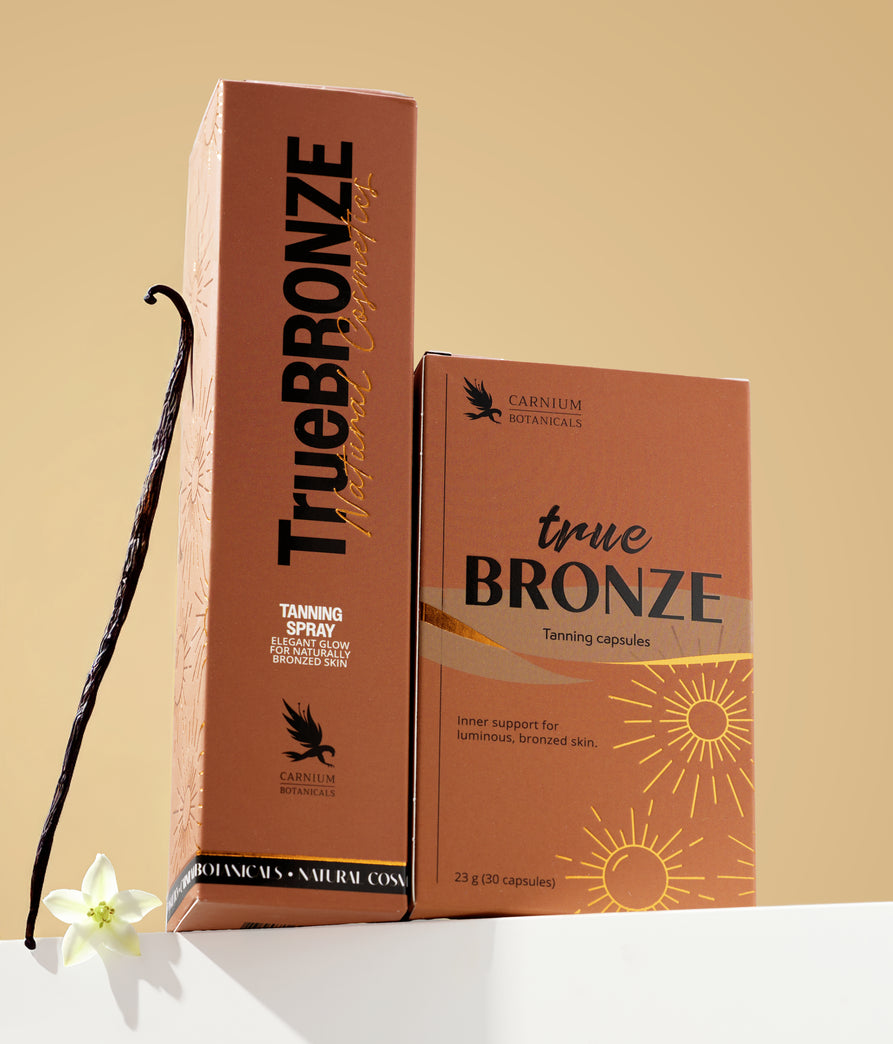 Hemos reunido lo mejor de la naturaleza en dos productos extraordinarios: el suplemento alimenticio True BRONZE y el spray oleoso natural True BRONZE. Juntos cuidan tu piel desde el interior y el exterior para que luzca radiante, uniforme y perfectamente hidratada durante todo el año.