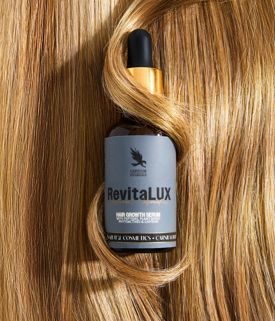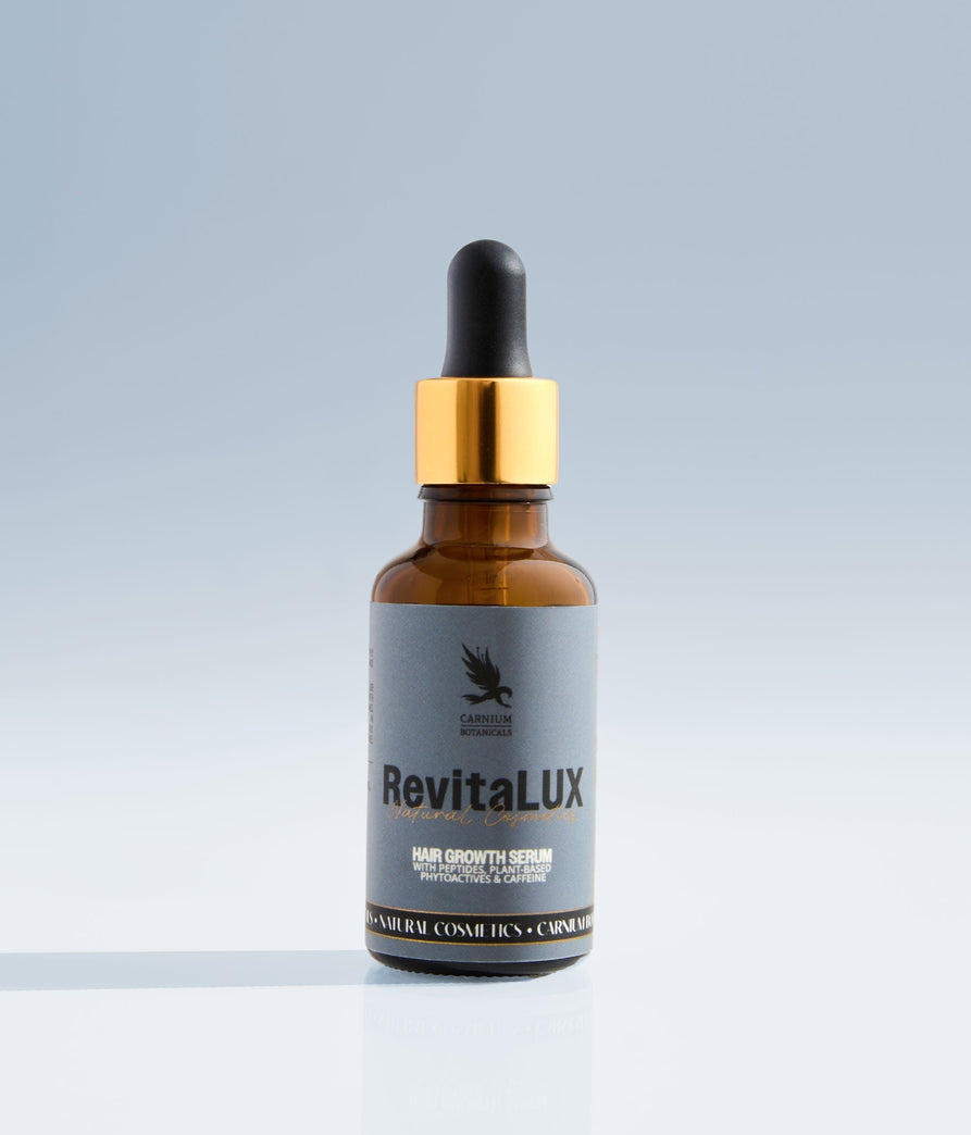 **RevitaLUX **es un sérum natural para el cabello, desarrollado para mujeres (y hombres) que enfrentan problemas de caída, crecimiento lento y cuero cabelludo sensible o irritado. Su fórmula contiene ingredientes activos comprobados como hidrolato de romero, cafeína, aloe vera, pantenol y Capixyl™, que nutren el cuero cabelludo, fortalecen los folículos y crean un ambiente óptimo para el crecimiento de un cabello sano y fuerte.