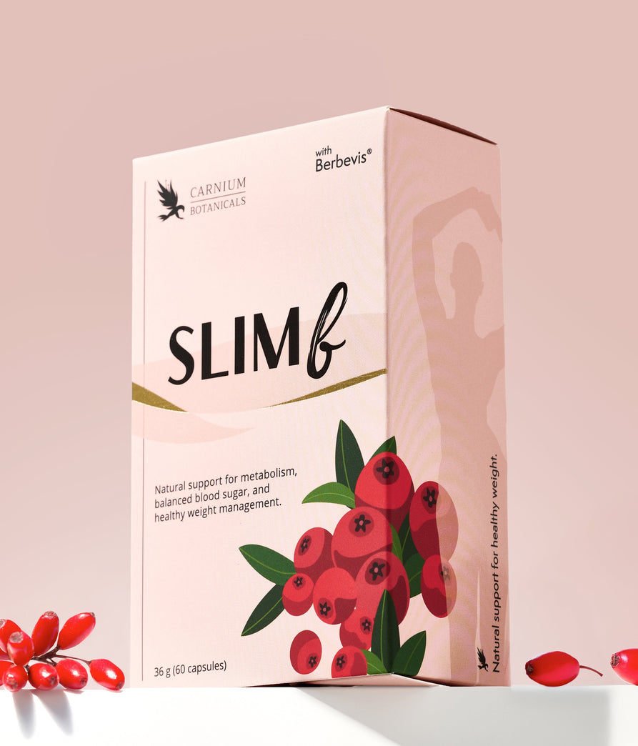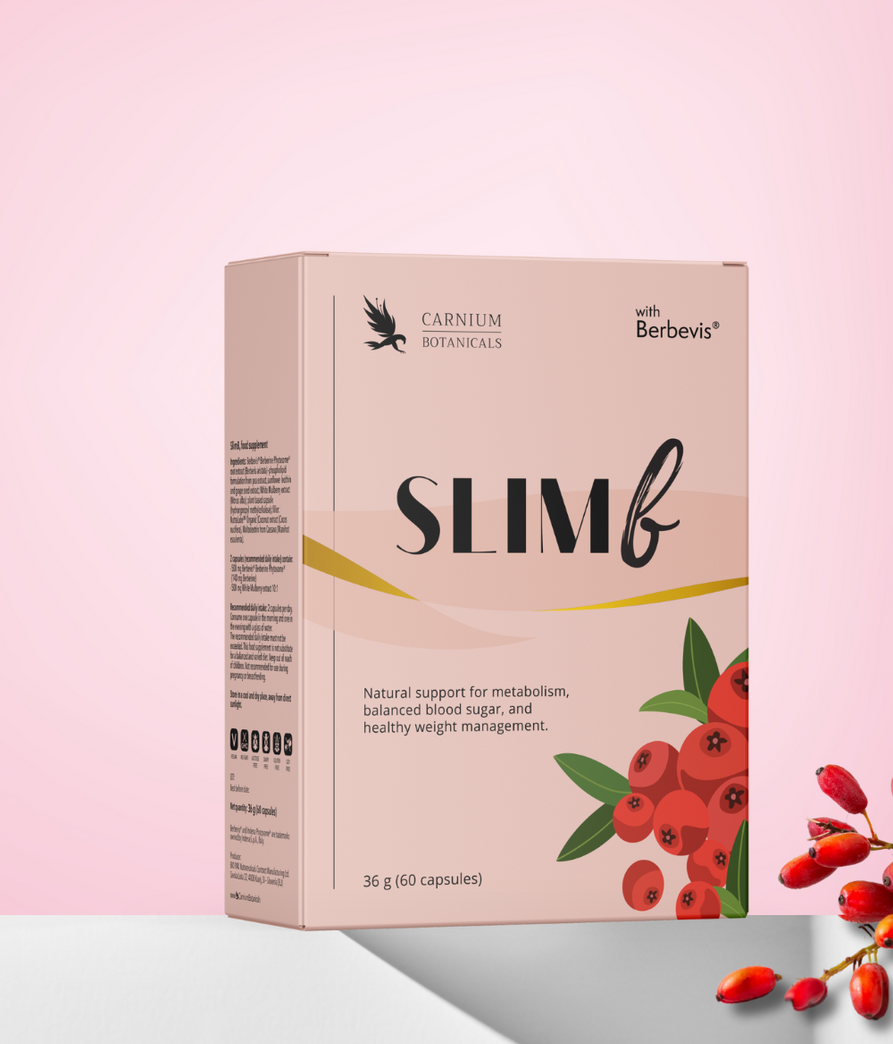 SlimB es un complemento alimenticio completo, diseñado para hombres y mujeres que desean tener un mayor control sobre su cuerpo, sin necesidad de recurrir a restricciones extremas. Contiene Berbevis® (berberina Phytosome™), una forma patentada con una absorción más de 1000 % superior a la berberina común, y extracto de morera blanca (10:1), que ayuda a regular el metabolismo de los carbohidratos y azúcares. ¿Te cuesta controlar el apetito por la noche, sufres bajones de energía, antojos constantes o notas que tu metabolismo va más lento? – SlimB es tu apoyo natural diario.